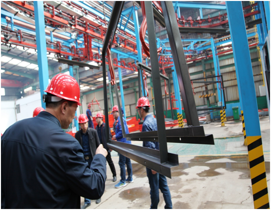 大漢股份噴粉流水線工藝進行了參觀。噴粉車間,采用新式環(huán)保設(shè)備更加大了對原料的利用率。