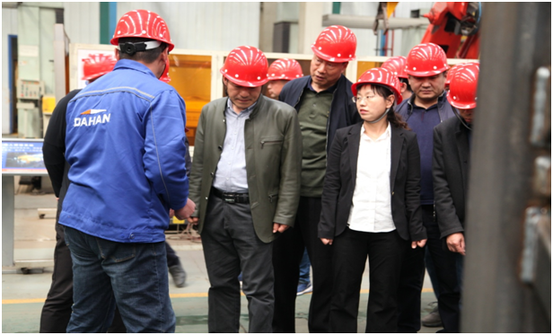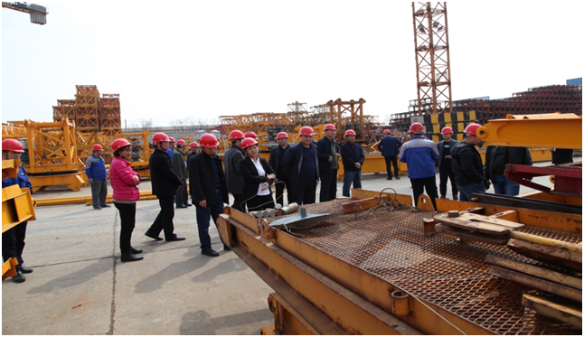 張總、師廠給馬汝坤主任、高連忠站長、蘇有斌書記等介紹了大漢股份打造智能化工廠的情況,現(xiàn)在的生產(chǎn)能力、塔機、升降機車間生產(chǎn)工藝裝備;公司相關(guān)技術(shù)人員詳細講解了大漢股份租賃設(shè)備回廠后定置存放和維護管理的經(jīng)驗。馬主任、高站長、蘇書記傳達此次活動的主要精神和目的,對公司塔機、升降機產(chǎn)品供不應(yīng)求的市場行情表示贊賞;對塔機、升降機用工藝技術(shù)保證產(chǎn)品質(zhì)量,用工藝裝備提升產(chǎn)品質(zhì)量的做法表示肯定;特別是當參觀到升降機噴粉流水線時,對公司投入巨資引進噴粉流水線設(shè)備,既環(huán)保又可加大原材料利用率的創(chuàng)新舉措給予高度評價。