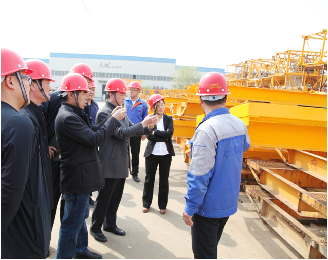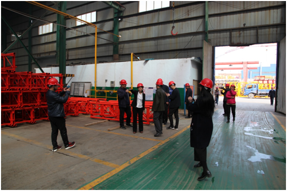 技術(shù)人員陪同質(zhì)安中心主要領(lǐng)導(dǎo)和各單位負責人參觀了大漢股份的塔機維修車間。