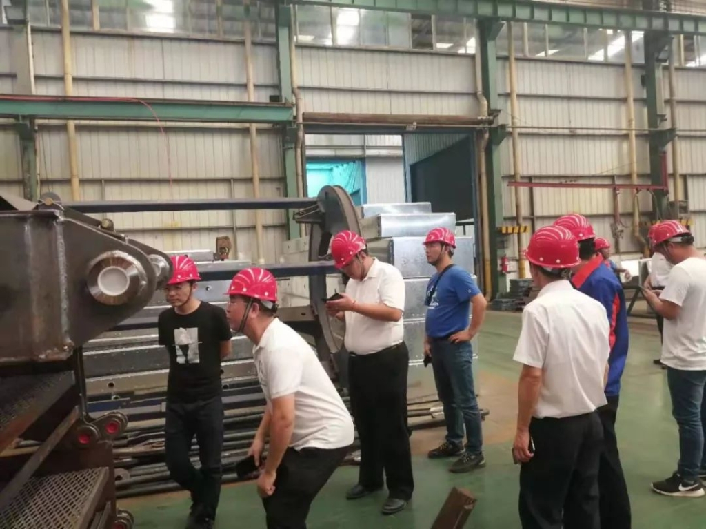9月8日,中建三局2019年局級設(shè)備專項檢查組在山東區(qū)域進行檢查期間,中建三局二公司設(shè)備公司執(zhí)行總經(jīng)理龍傳堯帶隊,三局一公司北方公司設(shè)備負責(zé)人劉開宇、二公司北京公司設(shè)備負責(zé)人吳勇、三公司北京公司設(shè)備負責(zé)人孫關(guān)候、總承包公司山東分公司設(shè)備負責(zé)人馬炳林、二公司設(shè)備管理公司安全部經(jīng)理余海濤、總承包工程裝備科技公司李時磊、三局西北公司第一經(jīng)理部席坤鵬一行8人,蒞臨大漢股份山東生產(chǎn)基地進行考察指導(dǎo)。
