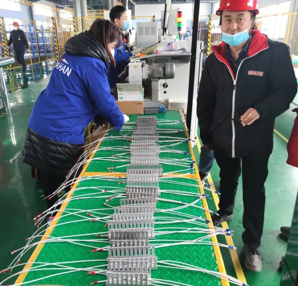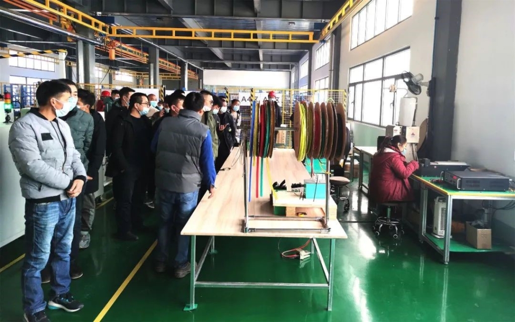 培訓(xùn)期間,參觀了電氣車(chē)間,電氣高級(jí)工程師講解了大漢科技自主研發(fā)的升降機(jī)一體機(jī)流水線(xiàn)及檢驗(yàn)調(diào)試系統(tǒng)、線(xiàn)束線(xiàn)纜全自動(dòng)加工機(jī)、塔機(jī)電控加工流水線(xiàn)、塔機(jī)電控整機(jī)調(diào)試。在員工體驗(yàn)培訓(xùn)區(qū),電氣工程師通過(guò)現(xiàn)場(chǎng)實(shí)物,一一解答客戶(hù)人員工作中的疑難問(wèn)題,提高客戶(hù)人員工作中的實(shí)戰(zhàn)水平。