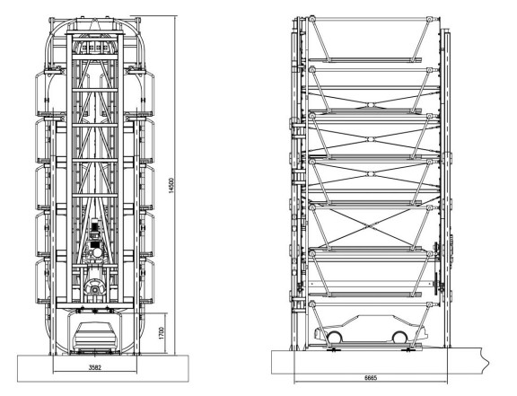 PCX垂直循環(huán)類(lèi)停車(chē)設(shè)備是采用垂直方向做循環(huán)運(yùn)動(dòng),通過(guò)專(zhuān)業(yè)電機(jī)帶動(dòng)傳動(dòng)機(jī)構(gòu),在牽引鏈條上,每隔一定距離安裝一個(gè)存車(chē)托架,存車(chē)托架隨鏈條一起作循環(huán)運(yùn)動(dòng),從而達(dá)到存取車(chē)的一種機(jī)械式停車(chē)設(shè)備。